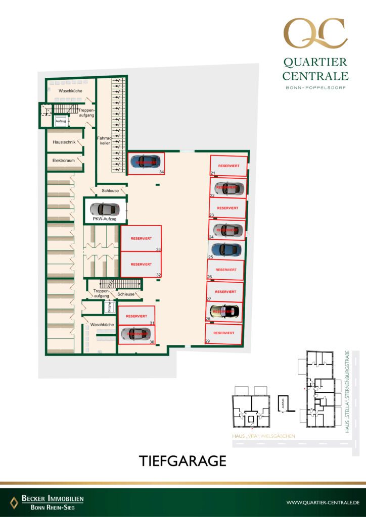 welche über den PKW-Aufzug sowie über das Untergeschoss der beiden Häuser erreichbar sind
